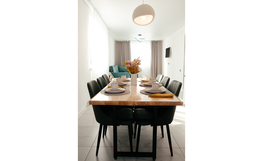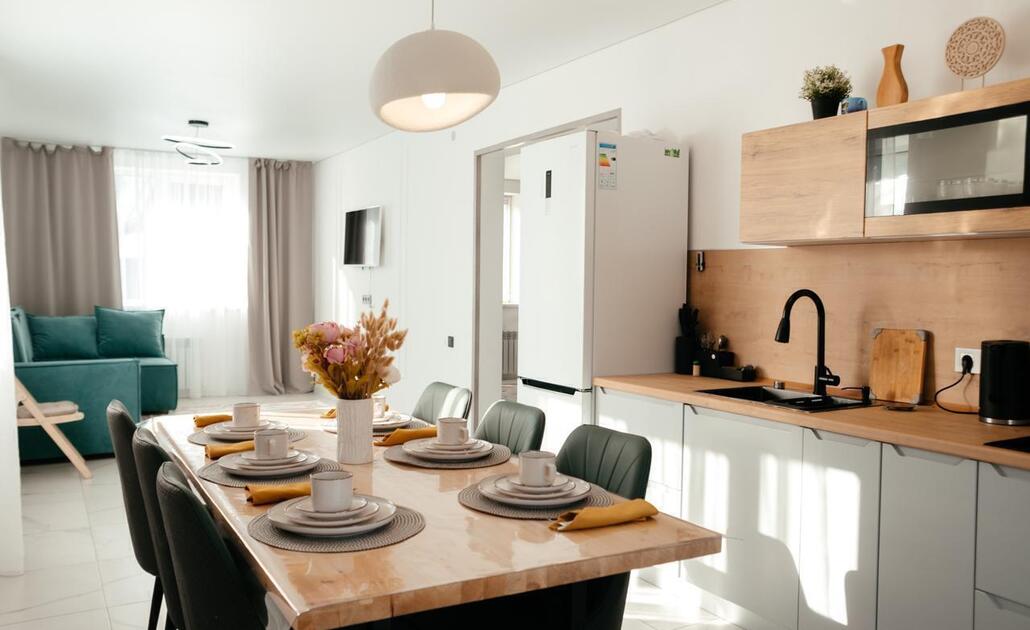 Новый коттедж в с.Карлушка ул. Чуйская 37 рядом с аэропортом. • Koмфорт: Площадь: 140кв.м ,вместимость до 10 человек. •Оснащение: Полностью оборудованные кухни (индукционная плита, духовой шкаф, холодильник, микроволновка, посуда), уютные гостиные с раскладными диванами, спальни, санузел • Удобства: Теплые полы на первом этаже, стиральная машина, Wi-Fi, телевизор, утюг и гладильная доска.