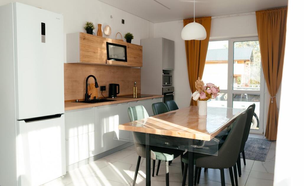 На первом этаже вас ждет просторная кухня-гостиная, идеально подходящая для совместного отдыха и приготовления пищи. На втором этаже расположены три спальни и уютная гостиная, где с удобством разместятся до 10 гостей. Панорамные окна с видом на горы🏔️